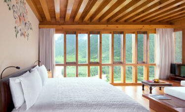 In Bumthang, the Amankora Lodge is nestled in the valley surrounded by scenic views and is known for its tranquil ambience. The itinerary here typically includes visits to significant cultural sites like Jakar Dzong, Kurjey Lhakhang, and Jambay Lhakhang, among Bhutan’s oldest temples. The area is also perfect for scenic hikes and experiencing traditional Bhutanese rural life.